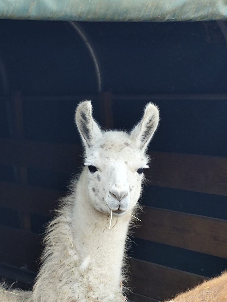 Mein heutiger tierischer Gefährte trägt den schönen Namen Yaku. Er wird in diesem Jahr sechs Jahre alt und ist noch in der Ausbildung. Noch ist er ein wenig scheu und sucht die Nähe der Herde. Als Desirees Mann Frank mir den Führstrick in die Hand legt, fühle ich mich dem kuscheligen Wesen an meiner Seite gleich sehr verbunden.